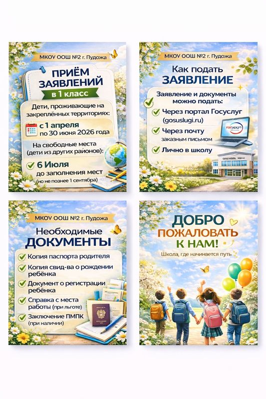 Приём заявлений о зачислении детей, проживающих на закрепленных территориях, в 1 классы начнётся 01 апреля 2026 года и завершится 30 июня 2026 года. Приём на свободные места детей из других районов города будет осуществляться с 6 июля до момента заполнения свободных мест, и завершится не позднее 1 сентября.